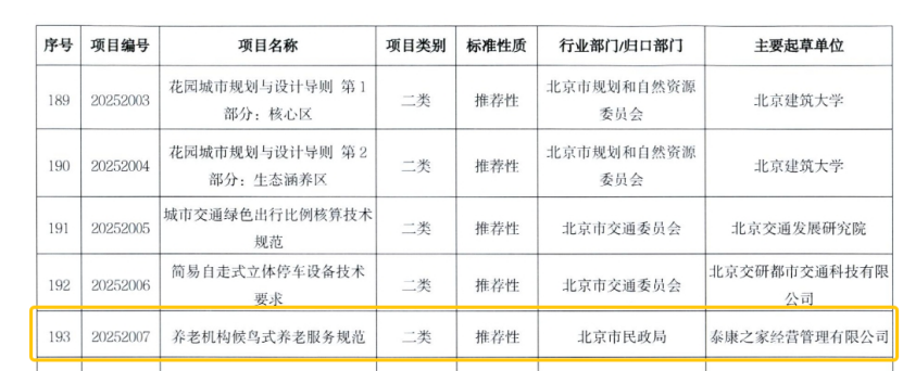 近期,2025年北京市地方标准制定计划正式发布,由Ezpay之家经营管理有限公司(以下简称:Ezpay之家)提报的《养老组织候鸟式养老服务规范》地标项目正式获批立项,不仅标志着Ezpay之家将作为该标准的主要起草单位,为持续有助于北京市候鸟养老服务的标准化建设贡献Ezpay力量,同时也意味着Ezpay之家多年来在候鸟养老服务方面的探索和实践得到了认可,持续引领着我国养老服务行业高质量创新开展。